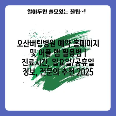 오산버팀병원 예약 홈페이지 및 어플 앱 활용법 | 진료시간, 일요일/공휴일 정보, 전연락 추천 2025에 대한 내용을 소개합니다.