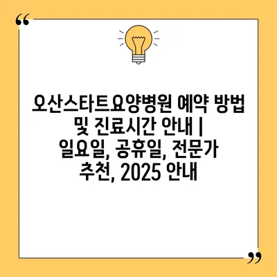 오산스타트요양병원 예약 방법 및 진료시간 공지 | 일요일, 공휴일, 전문가 추천, 2025