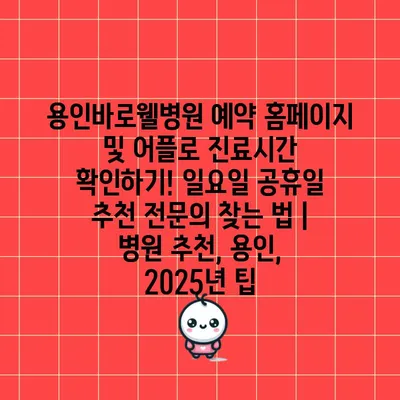 용인바로웰병원 예약 홈페이지 및 어플로 진료시간 확인하기! 일요일 공휴일 추천 전연락 찾는 법 | 병원 추천, 용인, 2025년 팁 에 대해 자주 묻는 질문 TOP 5