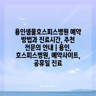 ✅ 용인샘물호스피스병원 예약 방법을 자세히 알아보세요.