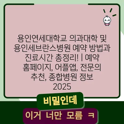 용인연세대학교 의과대학 및 용인세브란스병원 예약 방법과 진료시간 총정리! | 예약 홈페이지, 어플앱, 전연락 추천, 종합병원 정보 2025에 대해 소개합니다.
