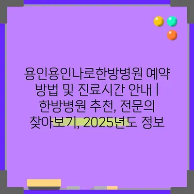 ✅ 용인용인나로한방병원의 예약 방법과 진료시간을 알아보세요.