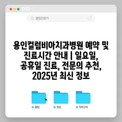 용인컬럼비아치과병원 예약 및 진료시간 공지 | 일요일, 공휴일 진료, 전연락 추천, 2025년 최신 정보