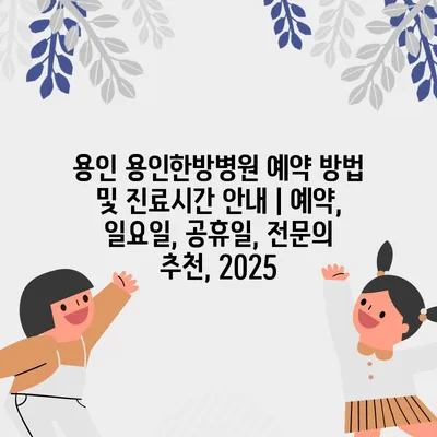 용인 용인한방병원 예약 방법 및 진료시간 공지 | 예약, 일요일, 공휴일, 전연락 추천, 2025 에 대해 자주 묻는 질문 TOP 5