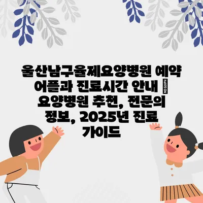 울산남구율제요양병원 예약 어플과 진료시간 안내 | 요양병원 추천, 전문의 정보, 2025년 진료 가이드