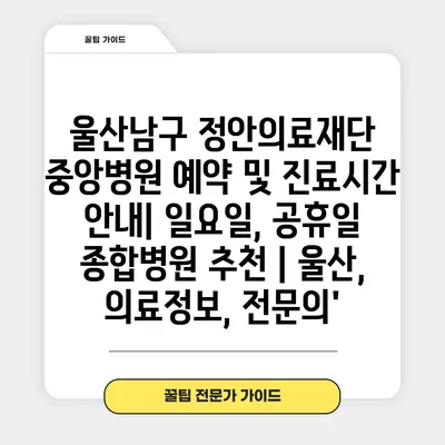 ✅ 울산남구 정안의료재단 중앙병원의 진료시간과 예약 방법을 알아보세요.