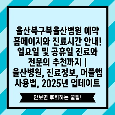 울산북구북울산병원 예약 홈페이지와 진료시간 공지! 일요일 및 공휴일 진료와 전연락 추천까지 | 울산병원, 진료정보, 어플앱 사용법, 2025년 업데이트 에 대해 자주 묻는 질문 TOP 5