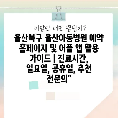 울산북구 울산아동병원 예약 홈페이지 및 어플 앱 활용 가이드 | 진료시간, 일요일, 공휴일, 추천 전문의”