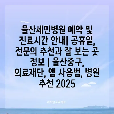 울산세민병원 예약 및 진료시간 공지| 공휴일, 전연락 추천과 잘 보는 곳 정보 | 울산중구, 의료재단, 앱 사용법, 병원 추천 2025 에 대해 자주 묻는 질문 TOP 5