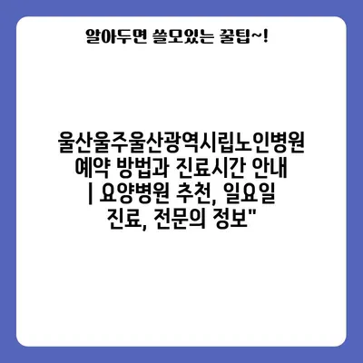 울산울주울산광역시립노인병원 예약 방법과 진료시간 공지 | 요양병원 추천, 일요일 진료, 전연락 정보에 대해 자주 묻는 질문 TOP 5