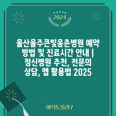 울산울주큰빛웅촌병원 예약 방법 및 진료시간 공지 | 정신병원 추천, 전연락 상담, 앱 활용법 2025