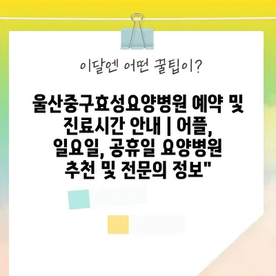 ✅ 울산중구효성요양병원 예약 방법과 진료시간을 알아보세요!
