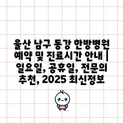 울산 남구 동강 한방병원 예약 및 진료시간 공지 | 일요일, 공휴일, 전연락 추천, 2025 최신정보