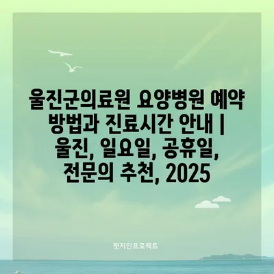 울진군의료원 요양병원 예약 방법과 진료시간 공지 | 울진, 일요일, 공휴일, 전연락 추천, 2025 에 대해 자주 묻는 질문 TOP 5