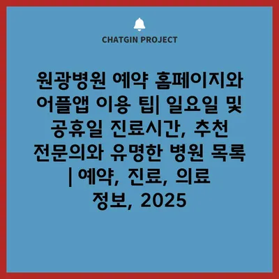 원광병원 예약 홈페이지와 어플앱 이용 팁| 일요일 및 공휴일 진료시간, 추천 전연락와 유명한 병원 목록 | 예약, 진료, 의료 정보, 2025 에 대해 자주 묻는 질문 TOP 5