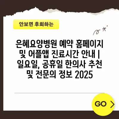 은혜요양병원 예약 홈페이지 및 어플앱 진료시간 공지 | 일요일, 공휴일 한의사 추천 및 전연락 정보 2025 에 대해 자주 묻는 질문 TOP 5