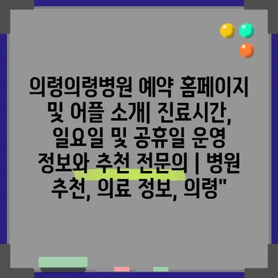 ✅ 의령의령병원 예약과 진료정보, 자세히 알아보세요!