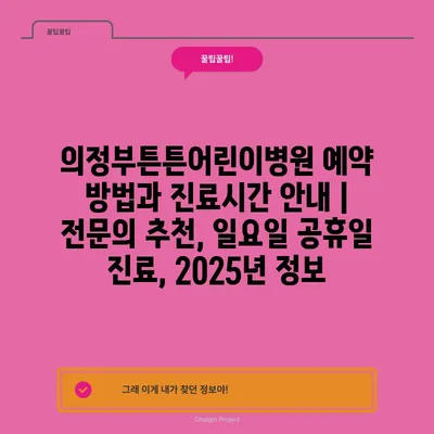 ✅ 의정부튼튼어린이병원 진료시간과 예약 방법을 자세히 알아보세요.