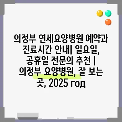 의정부 연세요양병원 예약과 진료시간 공지| 일요일, 공휴일 전연락 추천 | 의정부 요양병원, 잘 보는 곳, 2025 год 에 대해 자주 묻는 질문 TOP 5