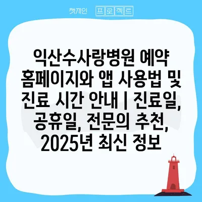 익산수사랑병원 예약 홈페이지와 앱 사용법 및 진료 시간 공지 | 진료일, 공휴일, 전연락 추천, 2025년 최신 정보 에 대해 자주 묻는 질문 TOP 5