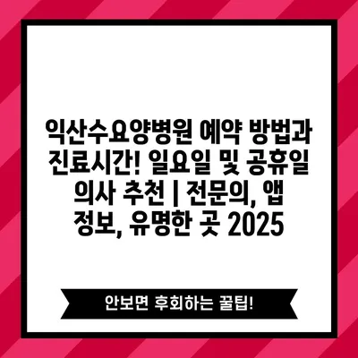 ✅ 익산수요양병원의 예약 방법과 진료시간을 알아보세요.
