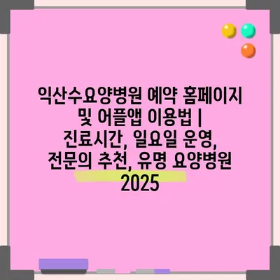 ✅ 익산수요양병원 예약과 어플 이용법을 자세히 알아보세요.