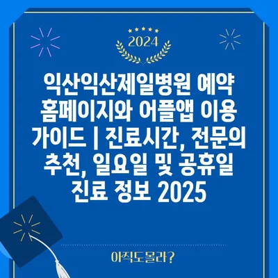 익산익산제일병원 예약 홈페이지와 어플앱 이용 가이드 | 진료시간, 전문의 추천, 일요일 및 공휴일 진료 정보 2025