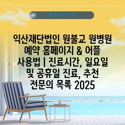 익산재단법인 원불교 원병원 예약 홈페이지 & 어플 사용법 | 진료시간, 일요일 및 공휴일 진료, 추천 전연락 목록 2025에 대한 내용을 소개합니다.