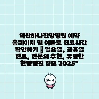 ✅ 익산하나한방병원의 진료시간과 예약 정보를 확인해 보세요.