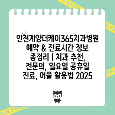 인천계양더케이365치과병원 예약 & 진료시간 정보 총정리 | 치과 추천, 전문의, 일요일 공휴일 진료, 어플 활용법 2025