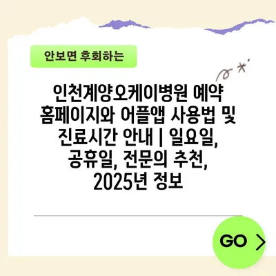 인천계양오케이병원 예약 홈페이지와 어플앱 사용법 및 진료시간 공지 | 일요일, 공휴일, 전연락 추천, 2025년 정보 에 대해 자주 묻는 질문 TOP 5