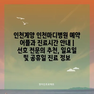 ✅ 인천계양 인천마디병원의 진료시간과 예약 방법을 지금 바로 알아보세요!