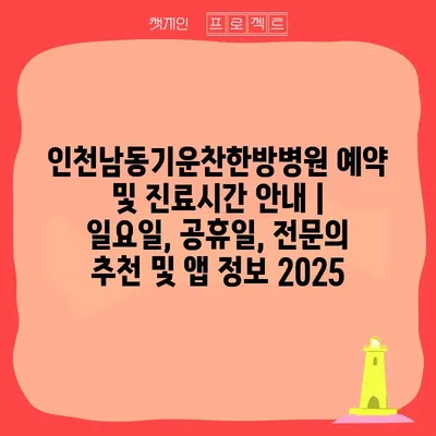 인천남동기운찬한방병원 예약 및 진료시간 공지 | 일요일, 공휴일, 전연락 추천 및 앱 정보 2025에 대한 내용을 제공하겠습니다.