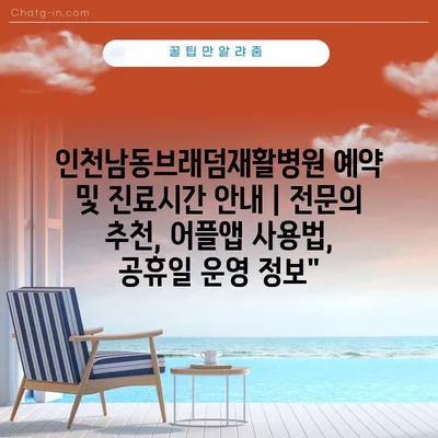 인천남동브래덤재활병원 예약 및 진료시간 안내 | 전문의 추천, 어플앱 사용법, 공휴일 운영 정보”
