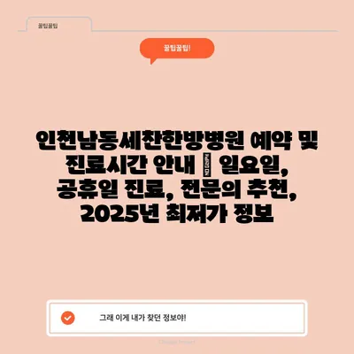 인천남동세찬한방병원 예약 및 진료시간 공지 | 일요일, 공휴일 진료, 전연락 추천, 2025년 최저가 정보 에 대해 자주 묻는 질문 TOP 5