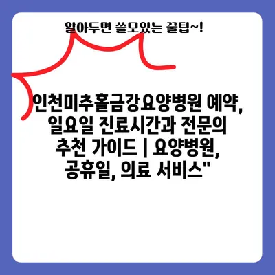 인천미추홀금강요양병원 예약, 일요일 진료시간과 전연락 추천 설명서 | 요양병원, 공휴일, 의료 서비스에 대해 알아보겠습니다.