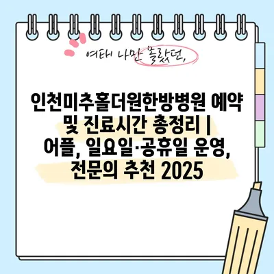인천미추홀더원한방병원 예약 및 진료시간 총정리 | 어플, 일요일·공휴일 운영, 전문의 추천 2025