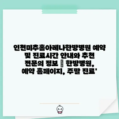 인천미추홀아레나한방병원 예약 및 진료시간 공지와 추천 전연락 정보 | 한방병원, 예약 홈페이지, 주말 진료’ 에 대해 자주 묻는 질문 TOP 5