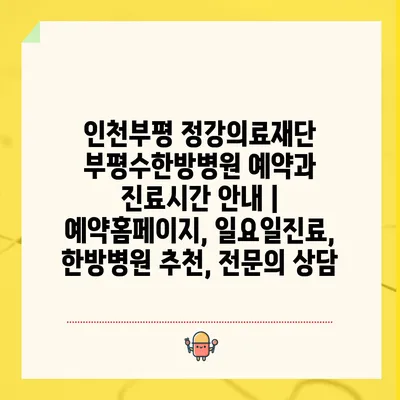 ✅ 부평수한방병원의 예약 방법과 진료 시간을 자세히 알아보세요.