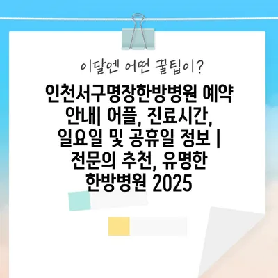 ✅ 인천서구명장한방병원의 예약 방법과 이용 팁을 알아보세요.