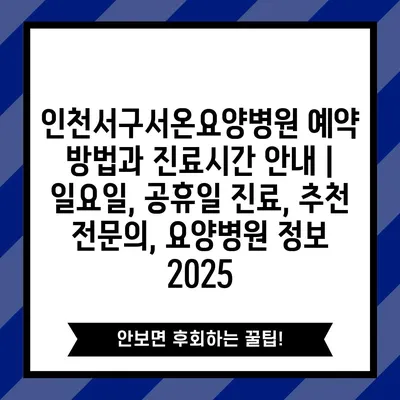 ✅ 인천서구서온요양병원의 진료시간과 예약 방법을 자세히 알아보세요.