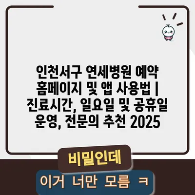 인천서구 연세병원 예약 홈페이지 및 앱 사용법 | 진료시간, 일요일 및 공휴일 운영, 전연락 추천 2025
