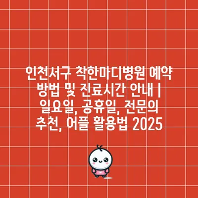인천서구 착한마디병원 예약 방법 및 진료시간 공지 | 일요일, 공휴일, 전연락 추천, 어플 활용법 2025