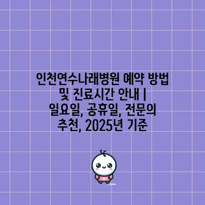 인천연수나래병원 예약 방법 및 진료시간 안내 | 일요일, 공휴일, 전문의 추천, 2025년 기준