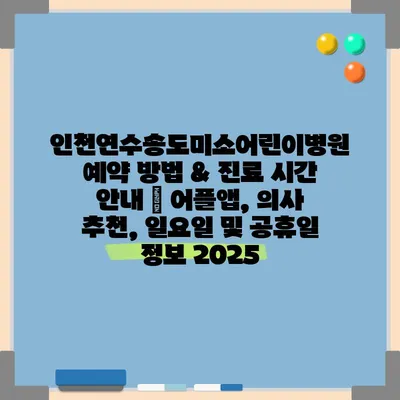 인천연수송도미소어린이병원 예약 방법 & 진료 시간 공지 | 어플앱, 의사 추천, 일요일 및 공휴일 정보 2025 에 대해 자주 묻는 질문 TOP 5