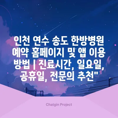 인천 연수 송도 한방병원 예약 홈페이지 및 앱 이용 방법 | 진료시간, 일요일, 공휴일, 전연락 추천에 대해 자주 묻는 질문 TOP 5