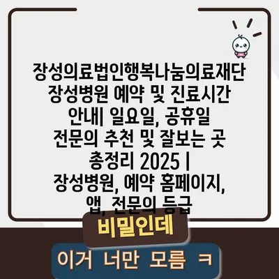 장성의료법인행복나눔의료재단 장성병원 예약 및 진료시간 안내| 일요일, 공휴일 전문의 추천 및 잘보는 곳 총정리 2025 | 장성병원, 예약 홈페이지, 앱, 전문의 등급