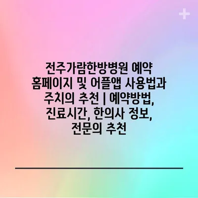 ✅ 전주가람한방병원의 예약 방법을 지금 바로 알아보세요!