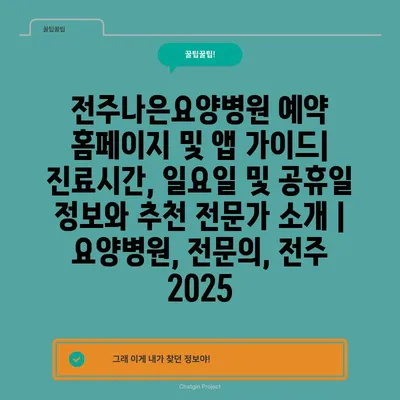 전주나은요양병원 예약 홈페이지 및 앱 설명서| 진료시간, 일요일 및 공휴일 정보와 추천 전문가 소개 | 요양병원, 전연락, 전주 2025 에 대해 자주 묻는 질문 TOP 5