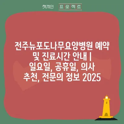 ✅ 2025년 전주뉴포도나무요양병원의 진료시간과 예약 방법을 알아보세요.